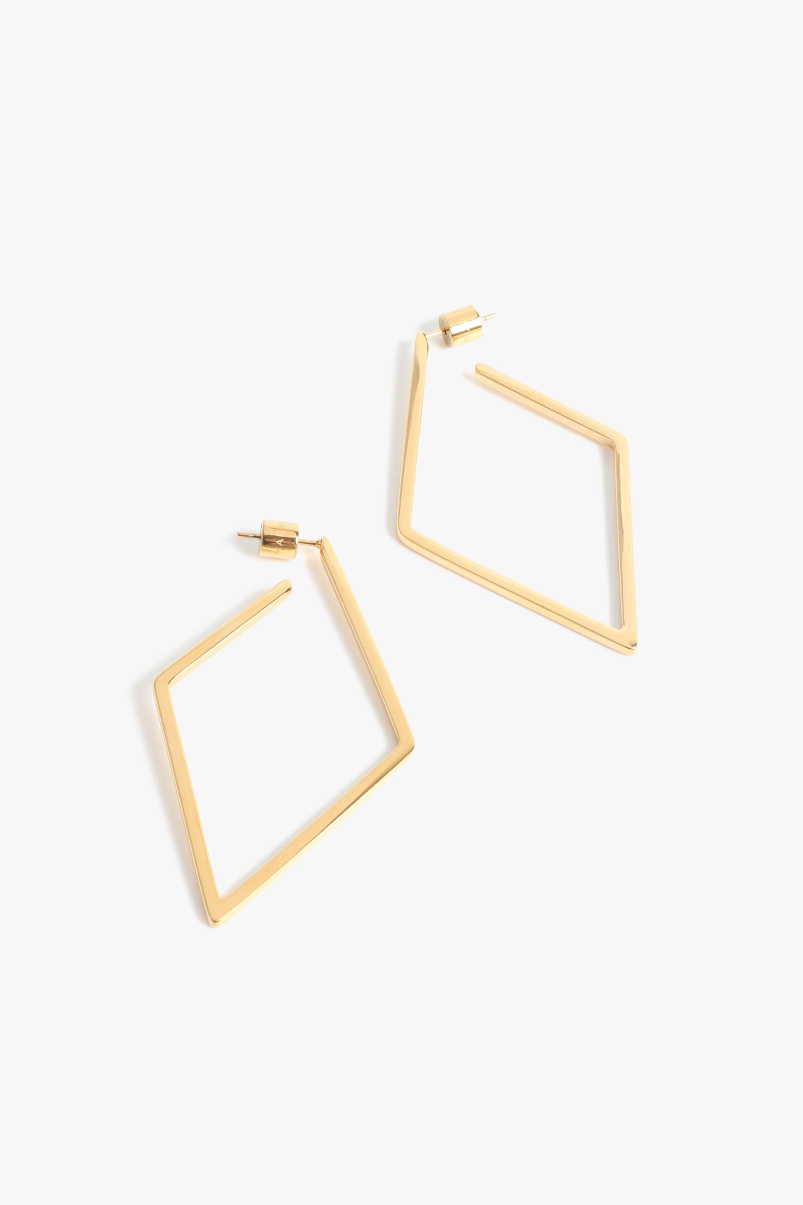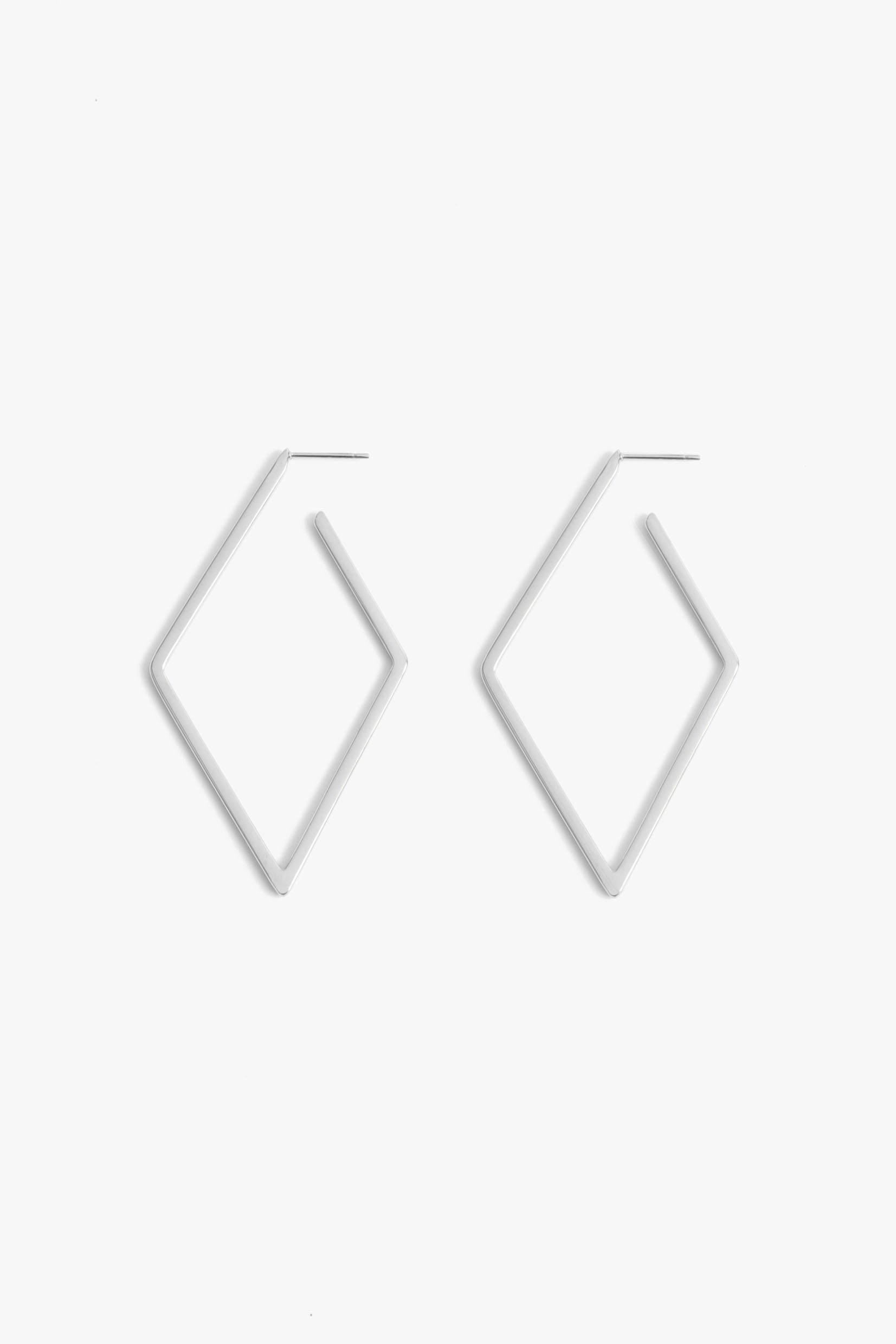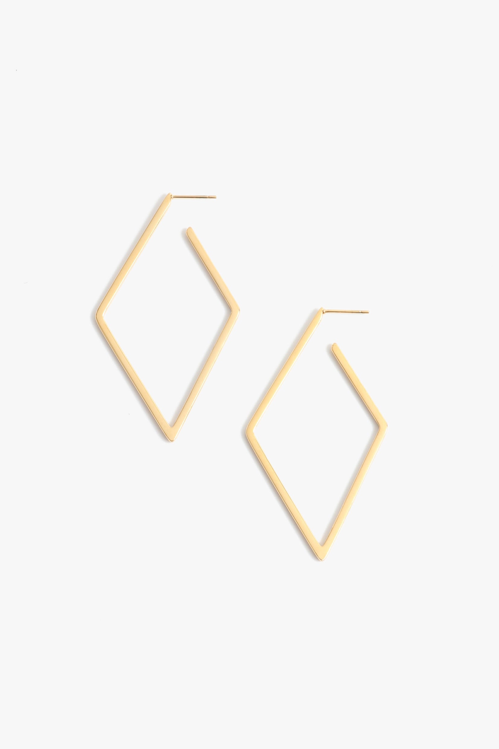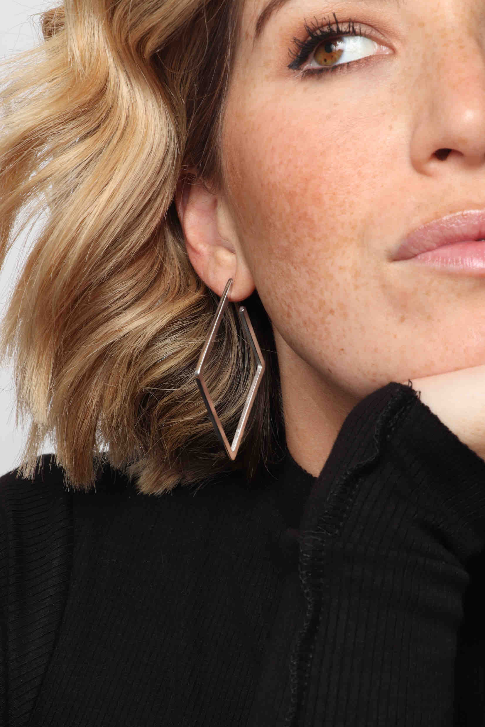 These diamond-shaped geometric hoop earrings offer a bold, modern twist on classic hoops with their angular design. Lightweight and sleek, they bring a contemporary edge to any outfit.